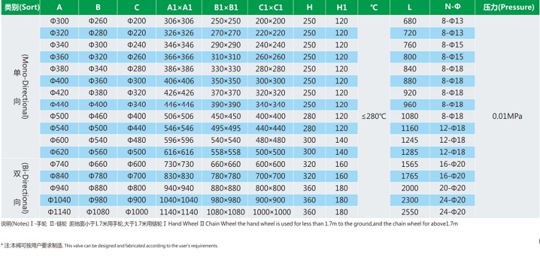 PZ673F-10型气动刀闸阀主要技术参数: